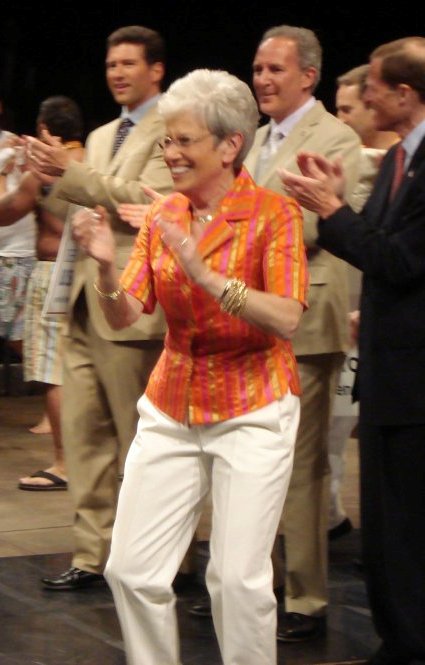 I have seen Wyman at various charity and social events in the 18 years I’ve lived in Connecticut, and I can tell you I think she will inject some fun into the campaign. She portrayed “Ebenancy” Scrooge in a rendition of “Twas the Night Before Christmas” in the Joy for the Kids Concert to benefit the Channel 3 Kids Camp. Wyman also modeled and danced for the “Capital Catwalk” to benefit (see above pic) “Dress for Success Hartford.”
