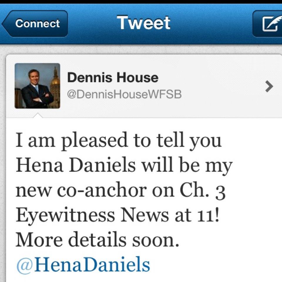 You can follow me on twitter for more details as they become available. www.twitter.com/@dennishousewfsb You can congratulate Hena right here at www.twitter.com/@henadaniels
