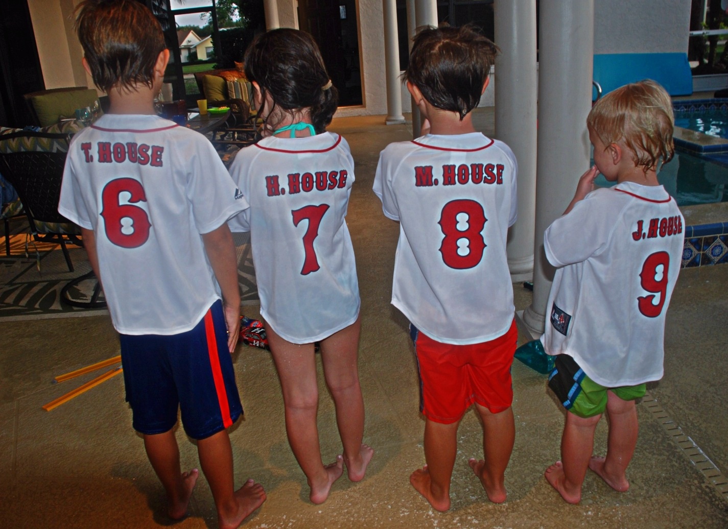 We brought along these Red Sox jerseys for the kids, personalized by Roberto Giansiracusa of Gima Sport in Hartford. The numbers represent the year each child was born.