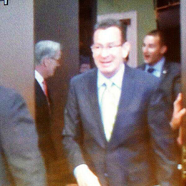 Governor Dannel Malloy and Republican gubernatorial candidate Tom Foley appeared on Face the State today at WFSB-TV. The two were in separate segments of the program, and had a brief interaction as the governor exited the FTS studio. Channel 3’s Kim Lucey and Kate Rayner said the former ambassador to Ireland greeted his rival with a “Hello, Governor,” and the governor responded with a “how are you?” The two shook hands and Foley entered the studio.