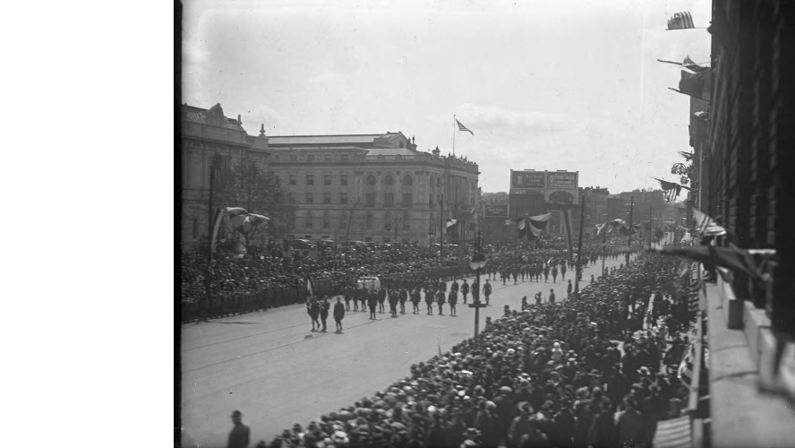 Military parade. Main Street in front of Atheneum