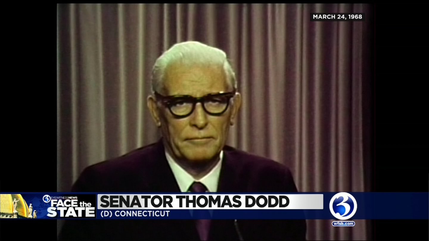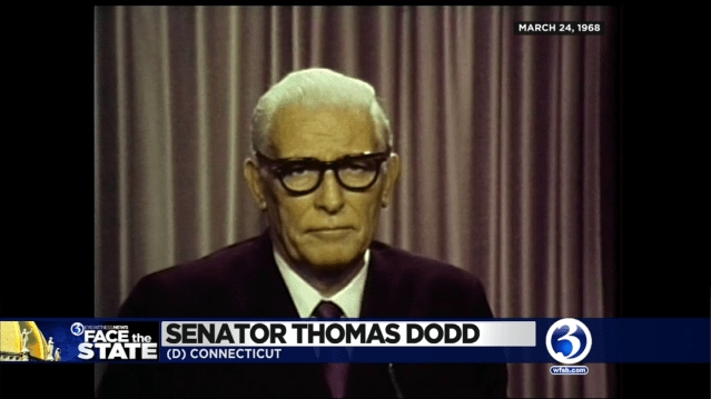 On March 24, 1968 Connecticut Senator Thomas Dodd was a guest on Channel 3’s Sunday political show “Congressional Report,” a precursor to “Face the State.” Our moderator Tom Eaton asked Dodd about his reaction to RFK entering the race. Dodd was going with his president, despite his friendship with the Kennedy family.