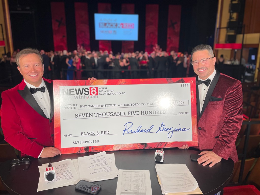 WTNH was the proud media sponsor and I was honored to host the Black and Red program alongside Rebecca Stewart, VP of content strategy at Hartford Healthcare, with News 8’s Lisa Carberg and Hartford Healthcare’s Tina Varona providing special reports. The show featured some remarkable information and stories about cancer care and if you missed it, you can watch it here: https://www.wtnh.com/news/health/watch-hartford-healthcares-black-red-gala/
