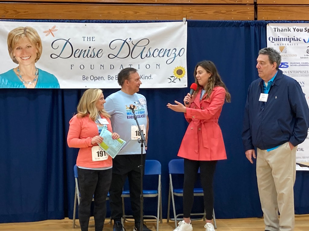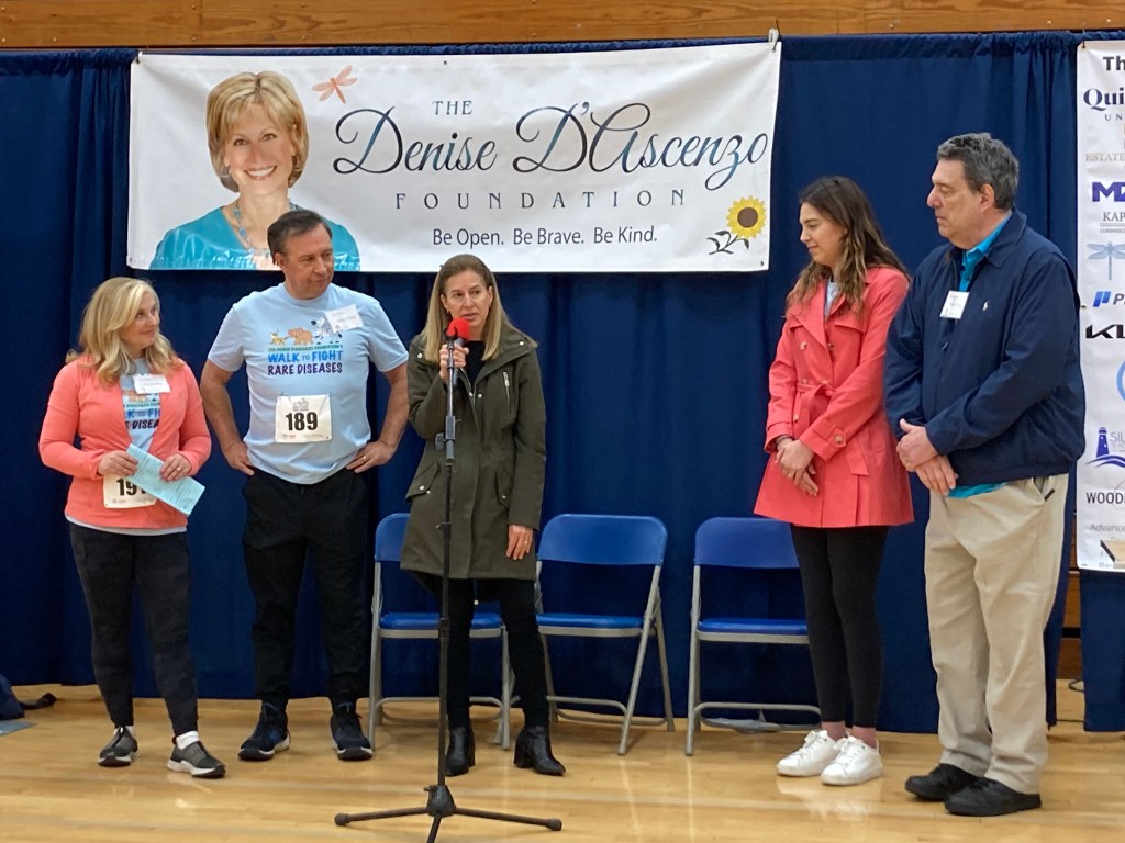 Rain didn’t damper enthusiasm or turnout for the 2nd annual Denise D’Ascenzo Foundation walk to fight rare diseases to benefit NORD, the National Organization for Rare Disorders. Once again, the beautiful campus of Quinnipiac University served as the backdrop and the course of the mile walk.